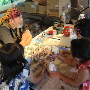 各地の祭事イベント等で、伝統玩具の実演製作や手作り指導・販売を行っています。また、ご要望に応じて、「だるまの色塗り体験」などの、参加型イベントも行っています。
